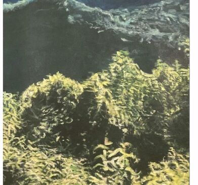 Elle invite à partager les questionnements qui soutendent son choix de peindre la nature dans son abondance et dans des endroits où la figure humaine est absente, même si on peut en discerner quelques traces.