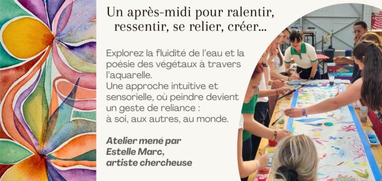 Aquarelliste et poète, Estelle explore la poésie à travers le mouvement de l’eau, des couleurs et des mots.