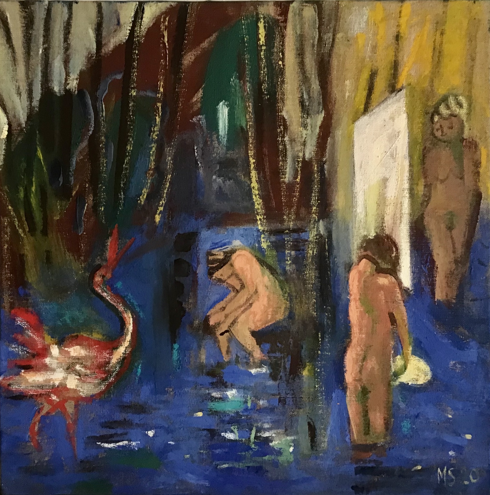 baigneuses dans l’étang 2020 40X40cm tempera sur toile