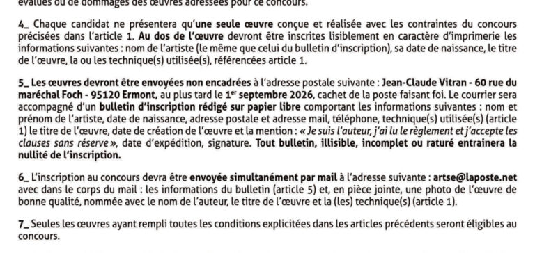 L’appel a pour objet une performance peinture grand format (3×1,80m) le dimanche 21 juin 2026....